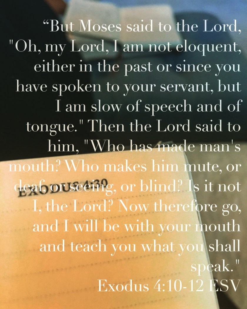 Then I wound up again, in the beginning of my Bible and I remembered when Moses told God he absolutely was incapable and God said, let me show you.