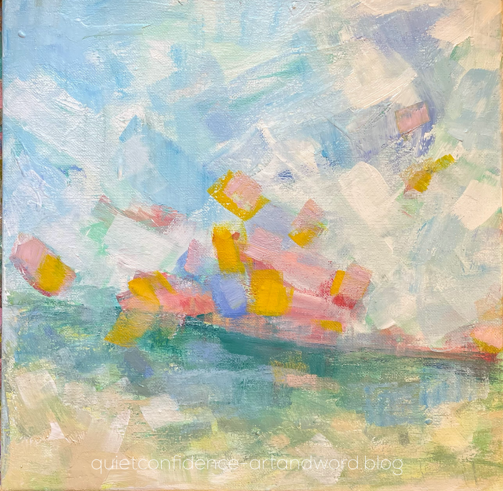 This afternoon, I procrastinated a commission that’s scaring me and I let the colors blue, white, pink and navy calm me, transport me to the shore.