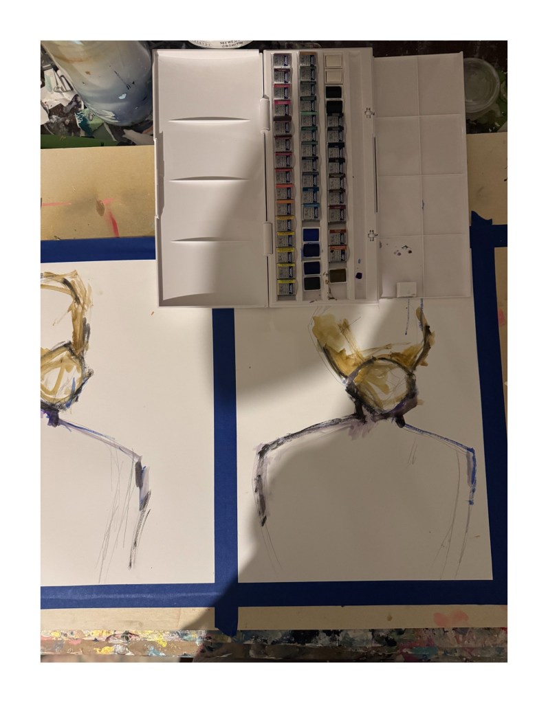 Thoughts of my latest artwork, thoughts of the completed pieces leaning like sacred treasures against the wall in my tiny little “art room”.